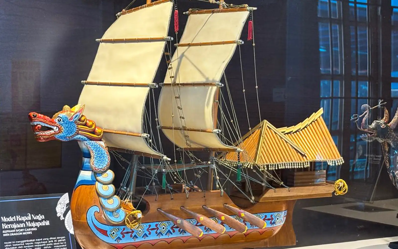 The displays we have show how the naga motif is used in functional artworks across Malaysia and nearby areas like the kris, fabrics, metal crafts, gongs, and ceramics.