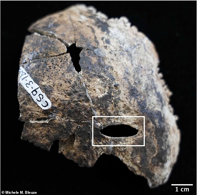 For example, a skull fragment that came from the left side of the forehead bore evidence that someone struck it with a hatchet-like tool, and child's hip bone was found with a similar mark.