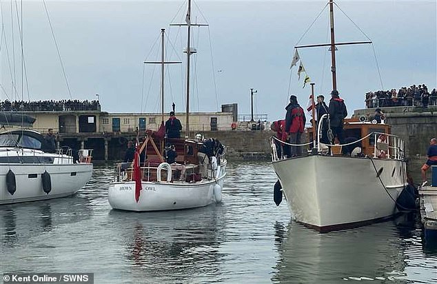 The fleet of 66 vessels set sail from Ramsgate, Kent, at 6am on Wednesday before happening on the new arrivals.
