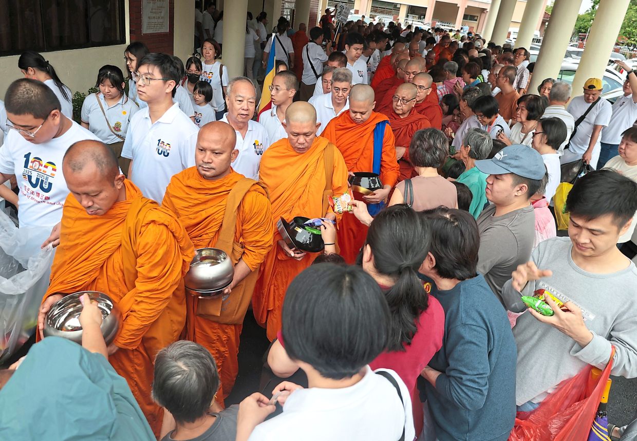 During the event, themed “The Path of Awakening”, devotees lined the corridors of the association’s premises in Jalan Anson, each bearing bags of food to offer to some 90 monks.