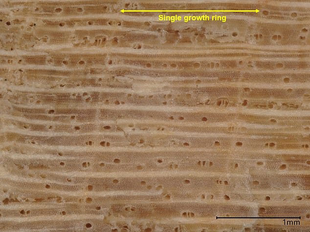 Elsewhere, they observed a distinctive feature in the form of 'internal' bark – a line in the middle of the section that indicates the sycamore was at one time multiple individual trunks which fused together.