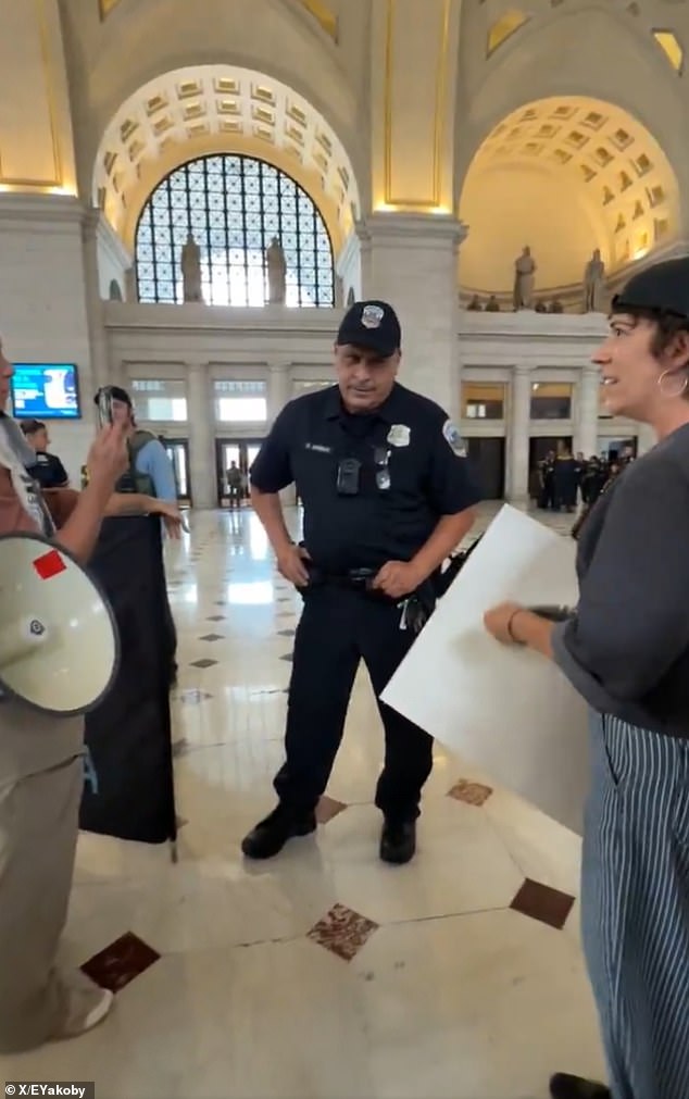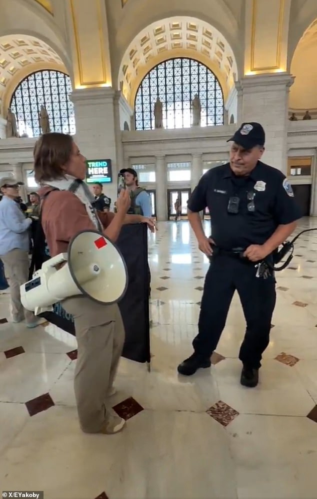 The moment was caught on video at Union Station in Washington DC amid protests reacting to a visit by Vice President JD Vance and Defense Secretary Pete Hegseth.